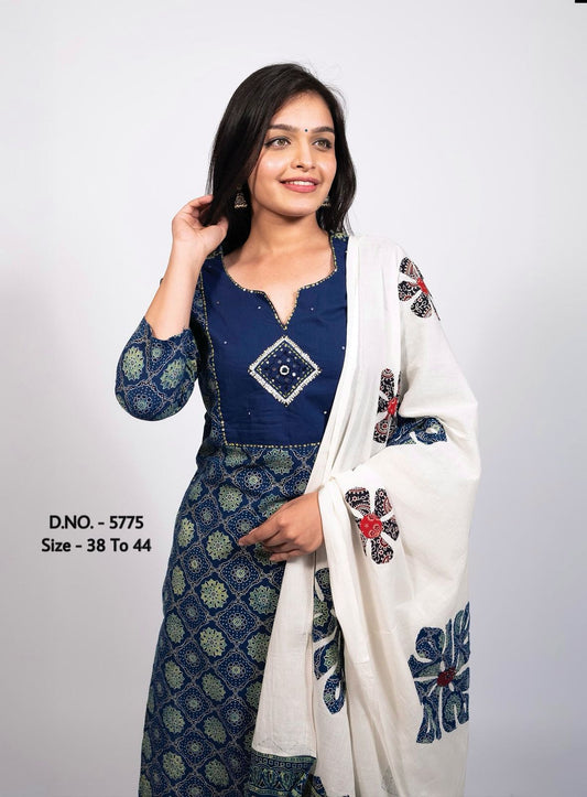 Anarkali Pattern Kurta, Pant And Dupatta Set.