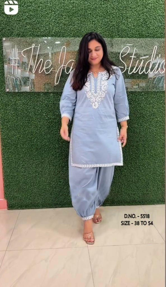 New Beautiful Pure Cotton Fabric Kurta And Afghani Pant Set.
