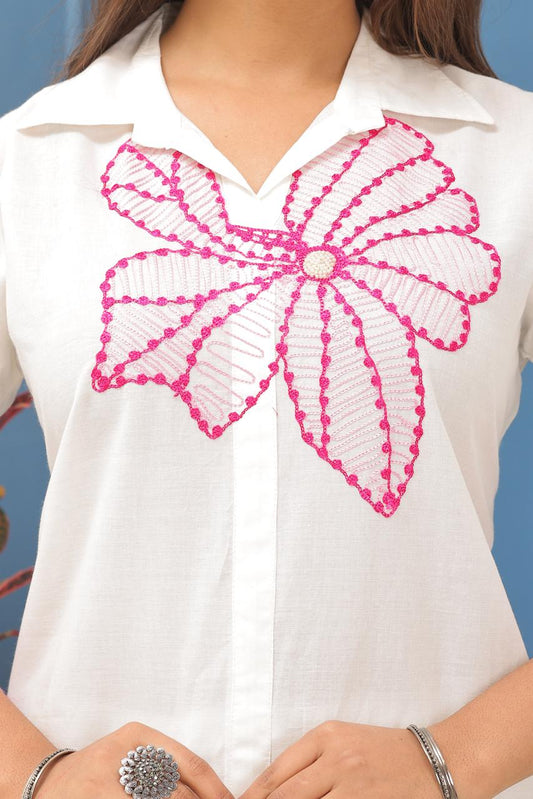 Elegant Cotton Slub Co-ord Set with Embroidery & Buttons