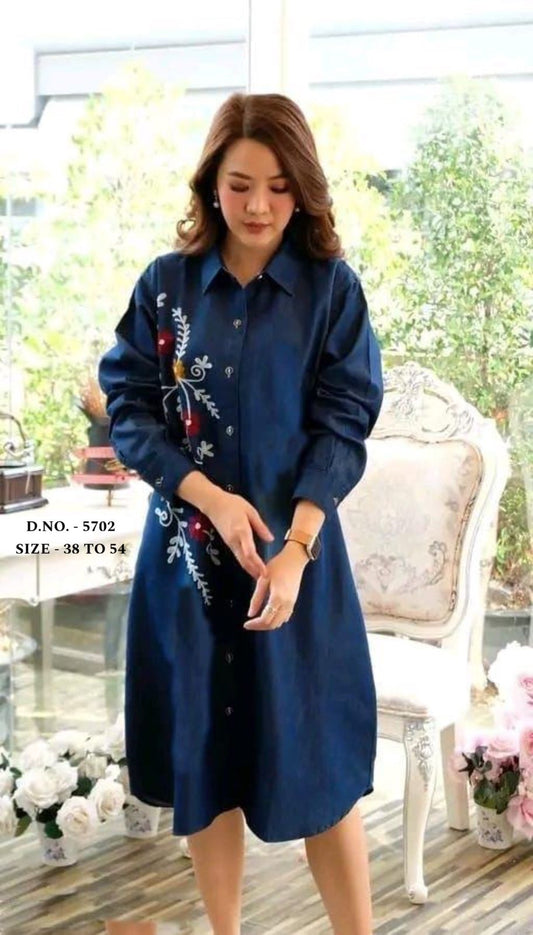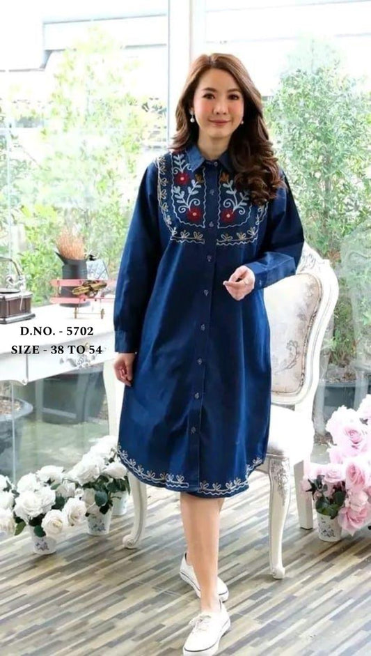 Beautiful Heavy Denim A-Line Kurti with Aari Embroidery & Pockets