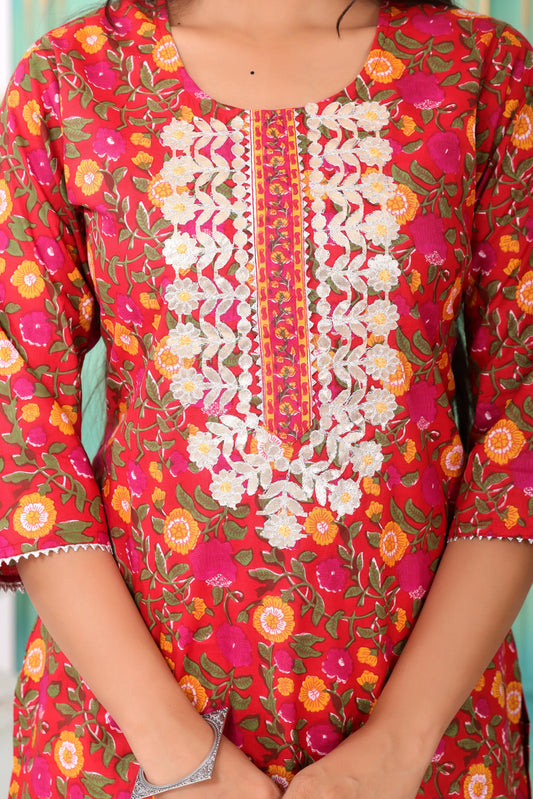 Cotton Bliss A-Line Kurti & Palazzo Set