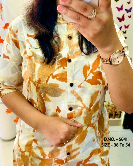 Cotton Slub/Flex (Khadi) Long Kurti with Front Slit & Openable Buttons