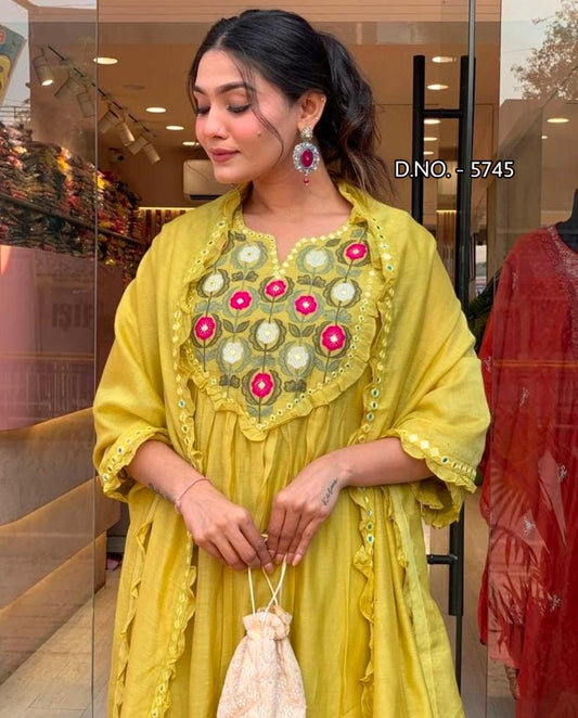 Anarkali Pattern Kurta, Pant And Dupatta Set.