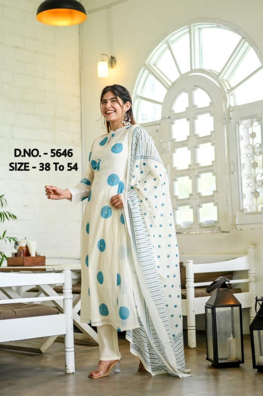 Elegant Chicken Linen Schiffli Kurti Set with Chanderi Pant & Dupatta