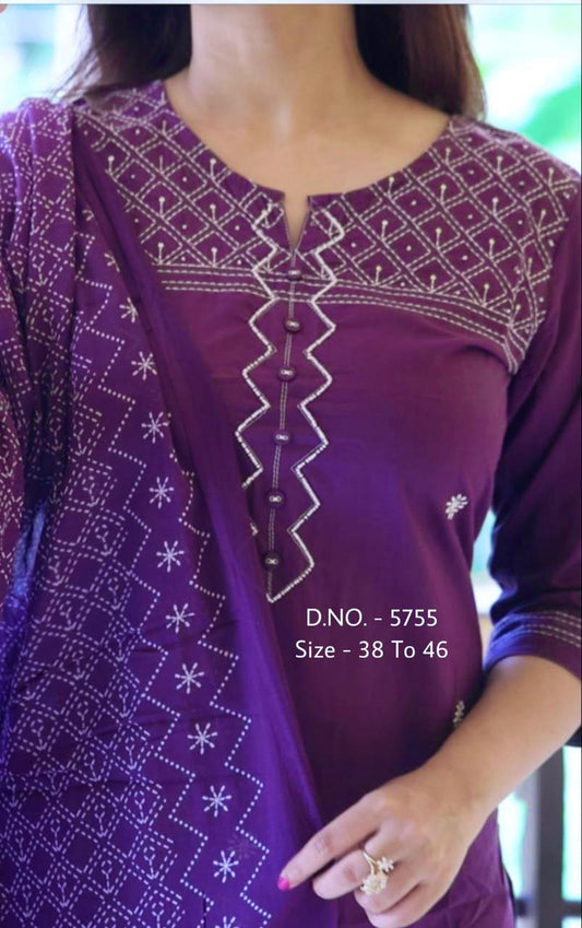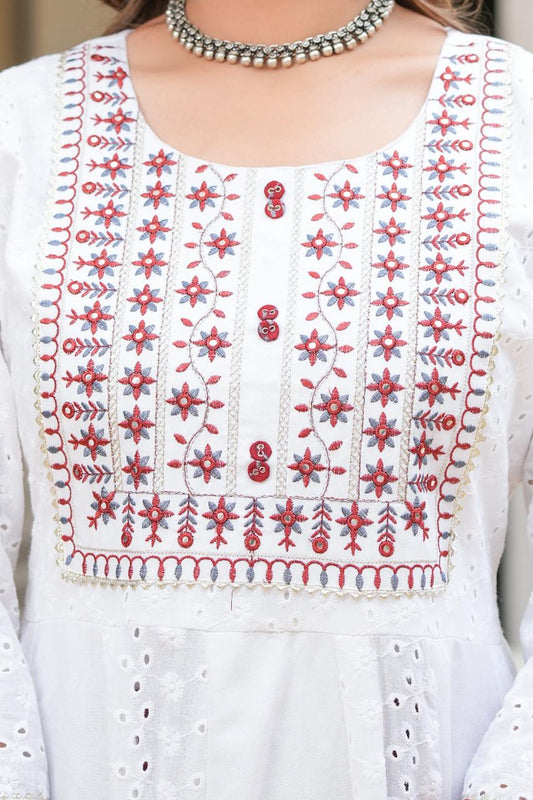 Elegant Rayon Shiffli Kurti Set with Embroidery & Malmal Dupatta