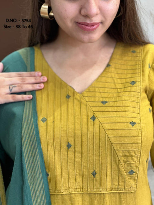 Graceful Cotton Linen Kurta Set with Kota Doriya Dupatta