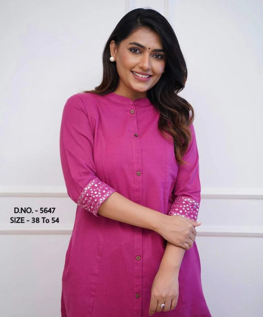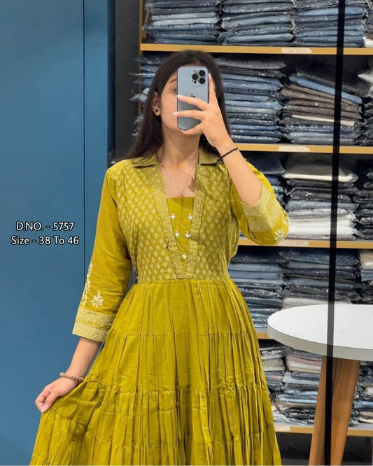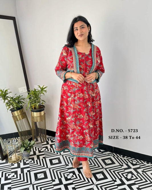 Heavy Rayon A-Line Kurti with Hand Aari Embroidery and Stylish Pants