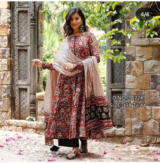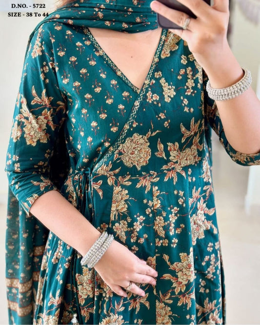 Graceful Floral Print Viscose Cotton Anarkali Kurta