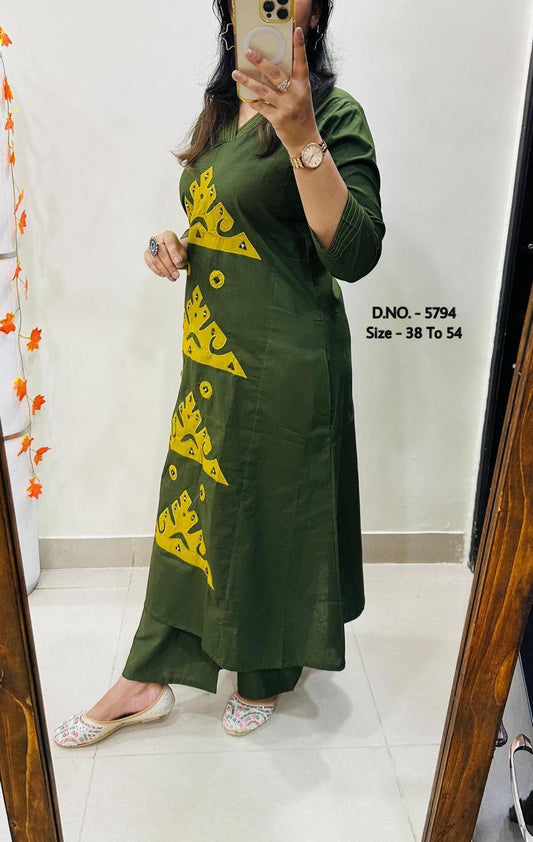 Heavy Cotton Slub/Flex (Khadi) Hand Aari Embroidered A-Line Kurti & Pant Set