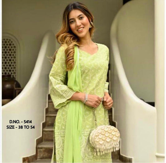 Heavy Chicken Sequence Work Suit Set with Kurti, Pant & Chiffon Dupatta