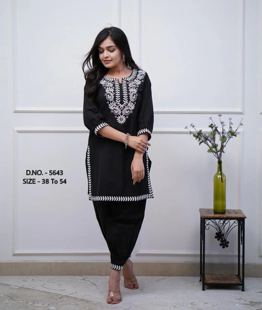 Pure Cotton Cambric Kurti with Hand Aari Embroidery and Afghani Style Pants