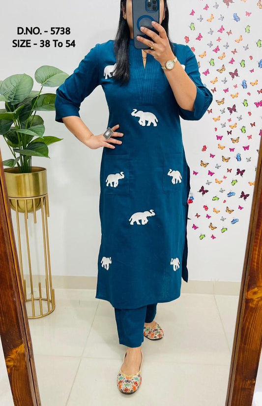 Pure Cotton Slub Fabric Kurta And Pant Set.