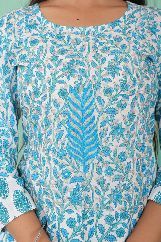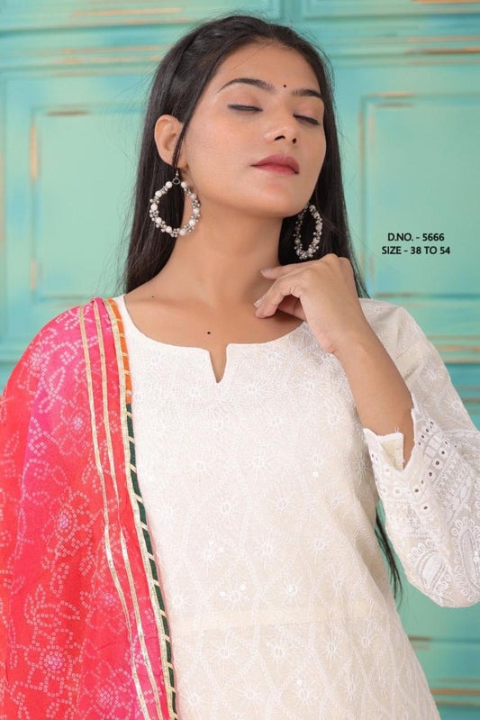 Stunning Heavy Chikankari Sequin Work Long Kurti Set with Mulmul Dupatta