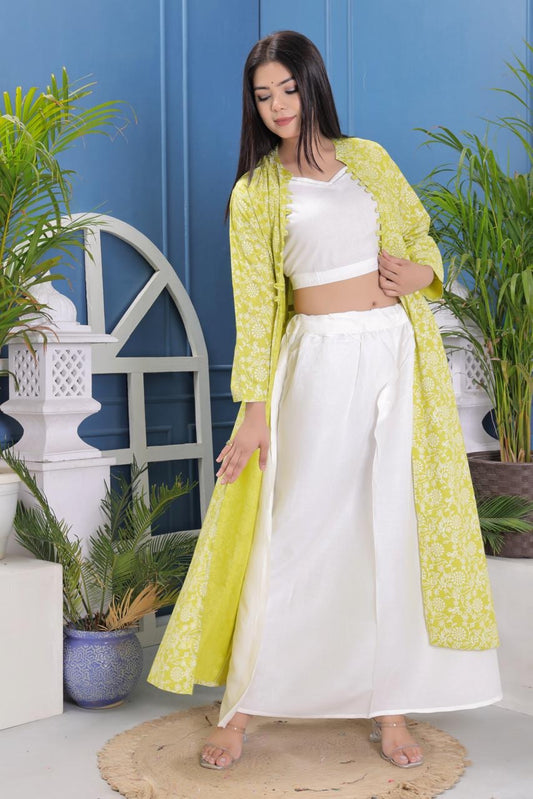 Pure Rayon Fabric Stylish Choli, Skirt And Shrug Set.