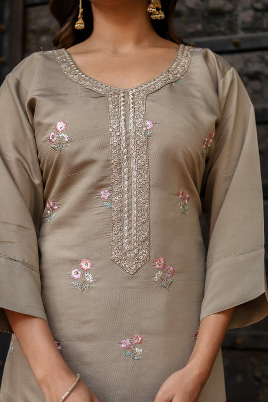 Stylish Heavy Cotton Slub/Cotton Flex (Khadi) Yarn Dyed Embroidered Cord Set