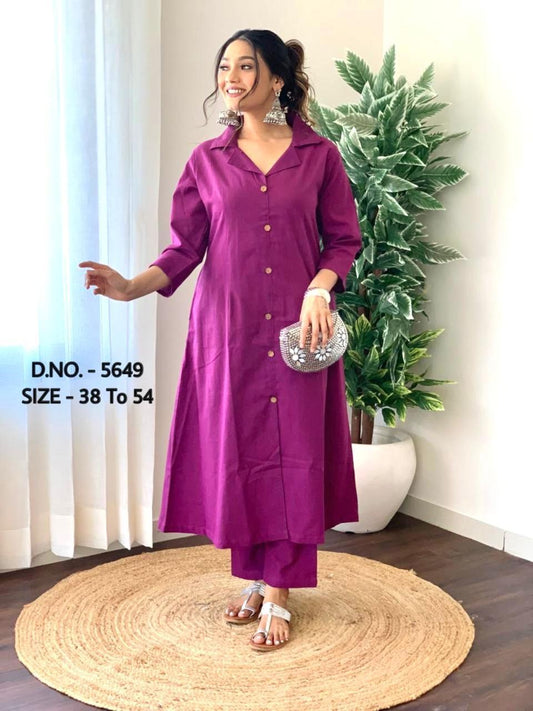 Stylish Heavy Cotton Slub A-Line Kurti Set with Wooden Buttons