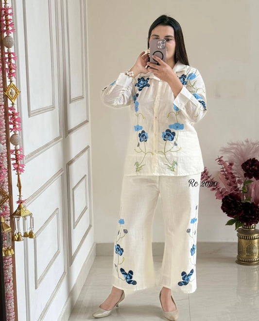 Heavy Cotton Slub/Flex (Khadi) Embroidered Short Shirt & Pant Co-ord Set