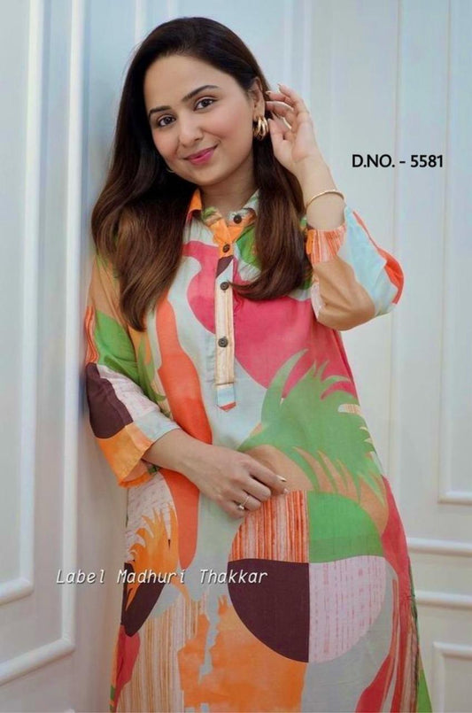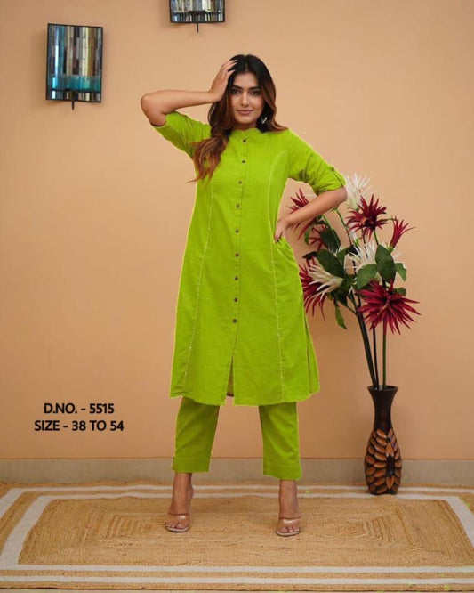 New Beautiful Pure Cotton Fabric Shirt Style Kurta And Pant Set.