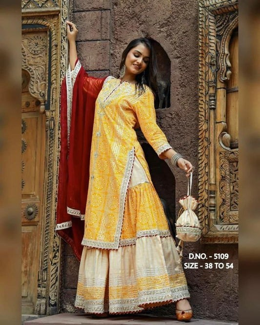 Pure Rayon Blend Fabric Kurta, Sharara, Dupatta And Bag Set.
