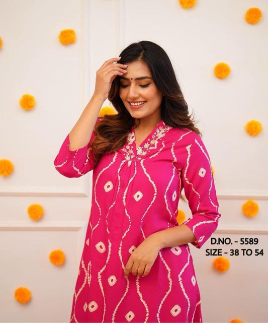 New Beautiful Pure Rayon Fabric Kurta And Pant Set.